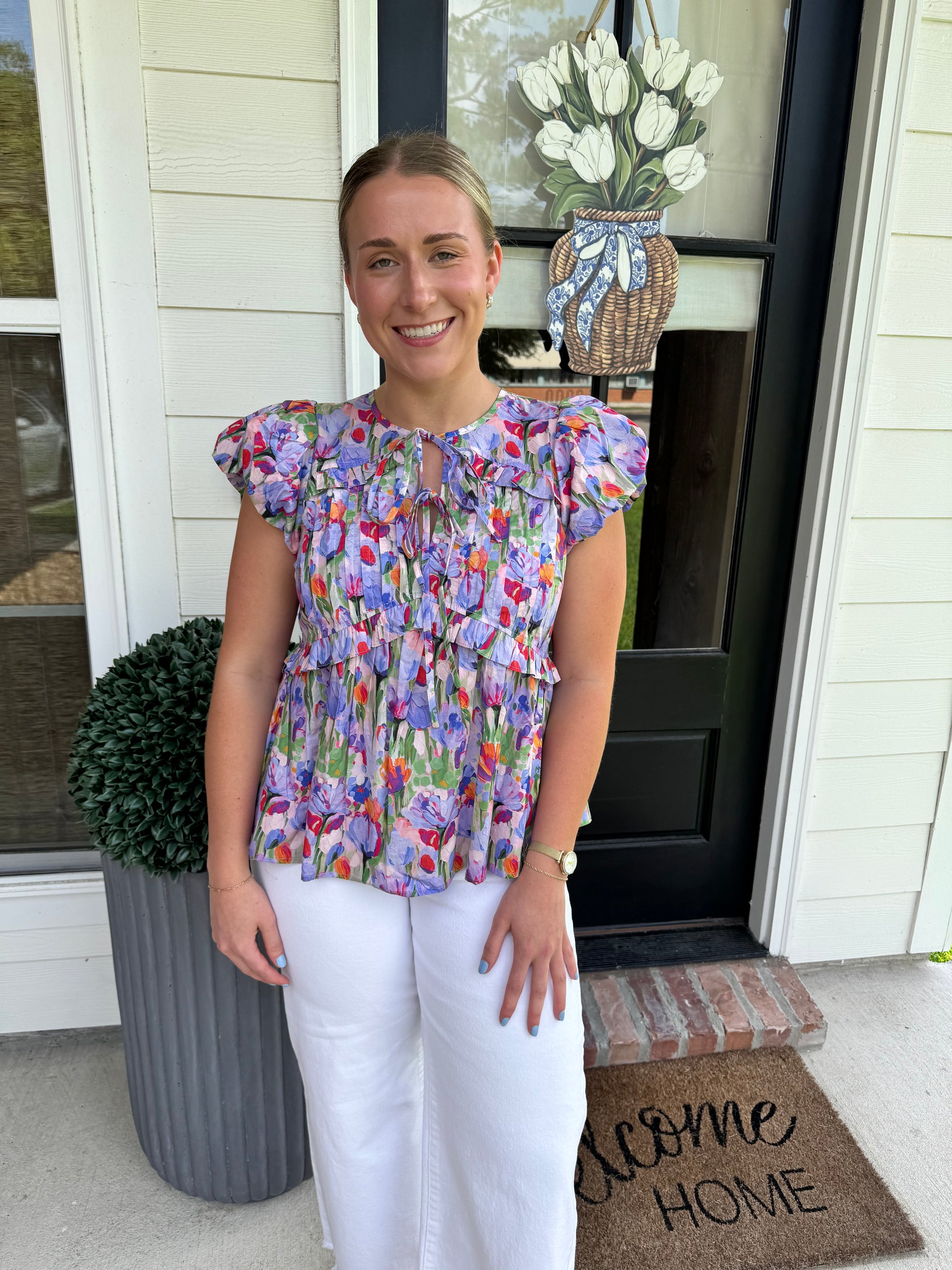 Elevate your wardrobe with our Feelings of Fun Lavender Top! This gorgeous purple piece features charming functional ties at the top and delightful detailing across the front that catches the eye. The adorable tiny puff sleeves add just the right touch of whimsy, while the full-length design ensures versatile styling options. Perfect for adding a playful pop of color to any outfit!