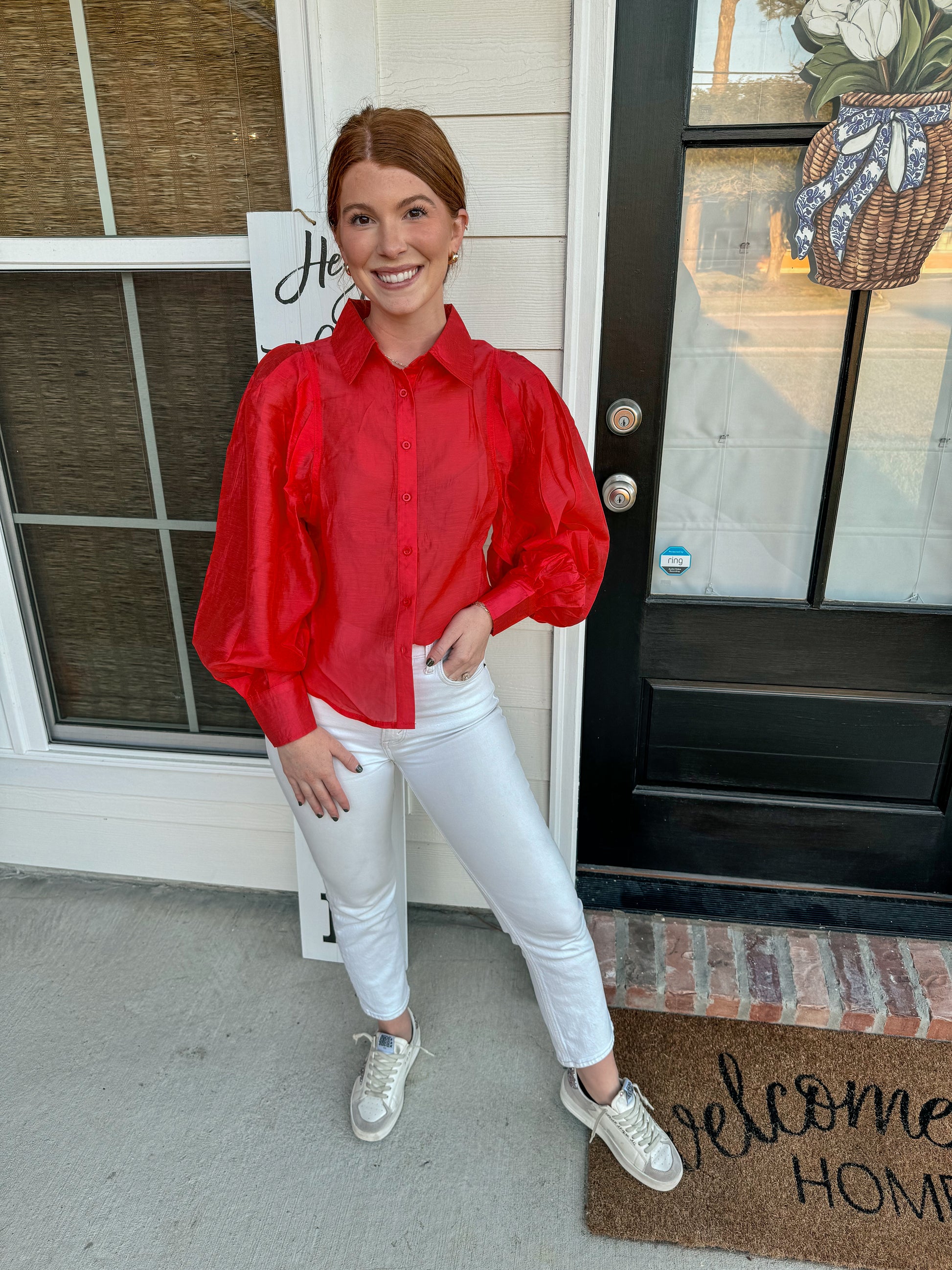 Add a pop of passionate energy to your holiday wardrobe with our Fiery Flare Puff Blouse! In a catching red color, this blouse features flattering puff sleeves that will make you look and feel holiday ready. Elevate any outfit with this statement piece.