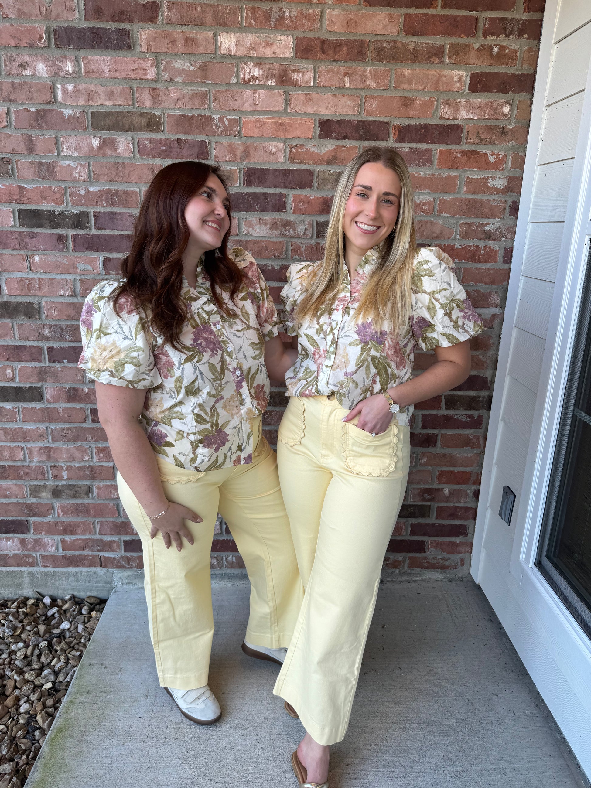 Skip the bold hues and embrace this ecru ruffle-neck top instead. A charming V-neckline with ruffled detailing pairs beautifully with button-front styling and delicate puff sleeves that frame your silhouette just right. Effortlessly flattering and ready for anything from casual coffee runs to weekend adventures.