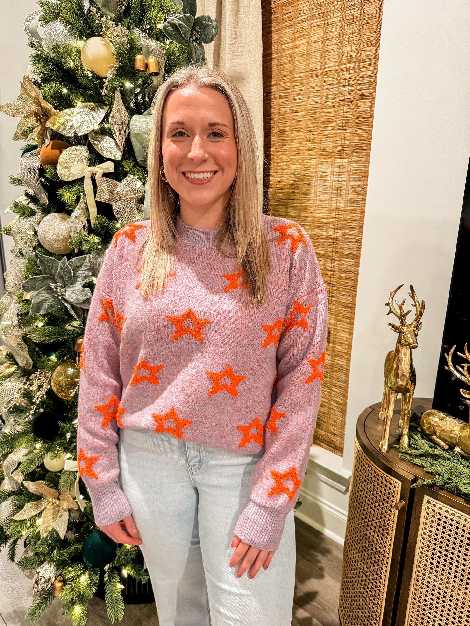 Get ready to be the star of the show with our Out of This World Sweater! This lilac sweater features fuzzy stars all over, making it the perfect sweater for a playful and fun look. Stay cozy and stylish in this full-length sweater.