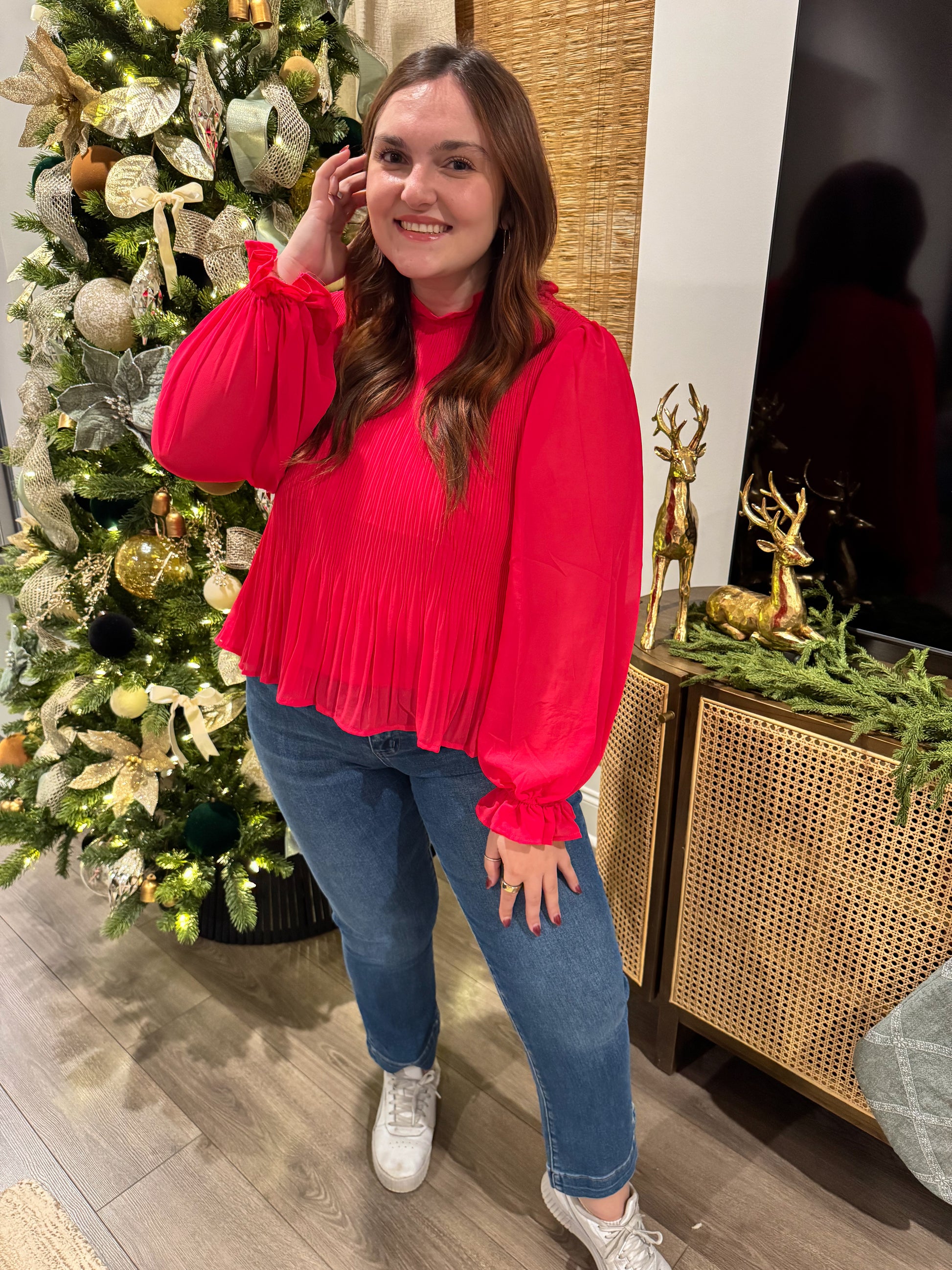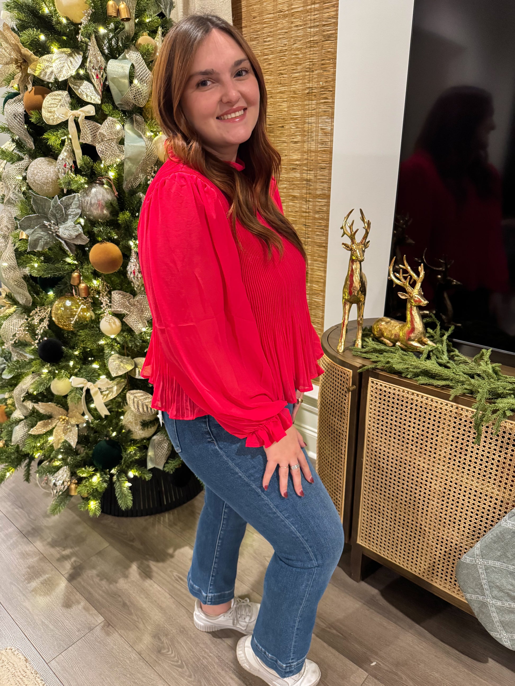 Add a pop of color to your wardrobe with our Pretty & Pleated Top! This hot pink top features a high neck and ruffle detailing, making it perfect for dressing up and standing out. Plus, with its pleated design, you'll stay on-trend while feeling comfy and chic. Get ready to turn heads!