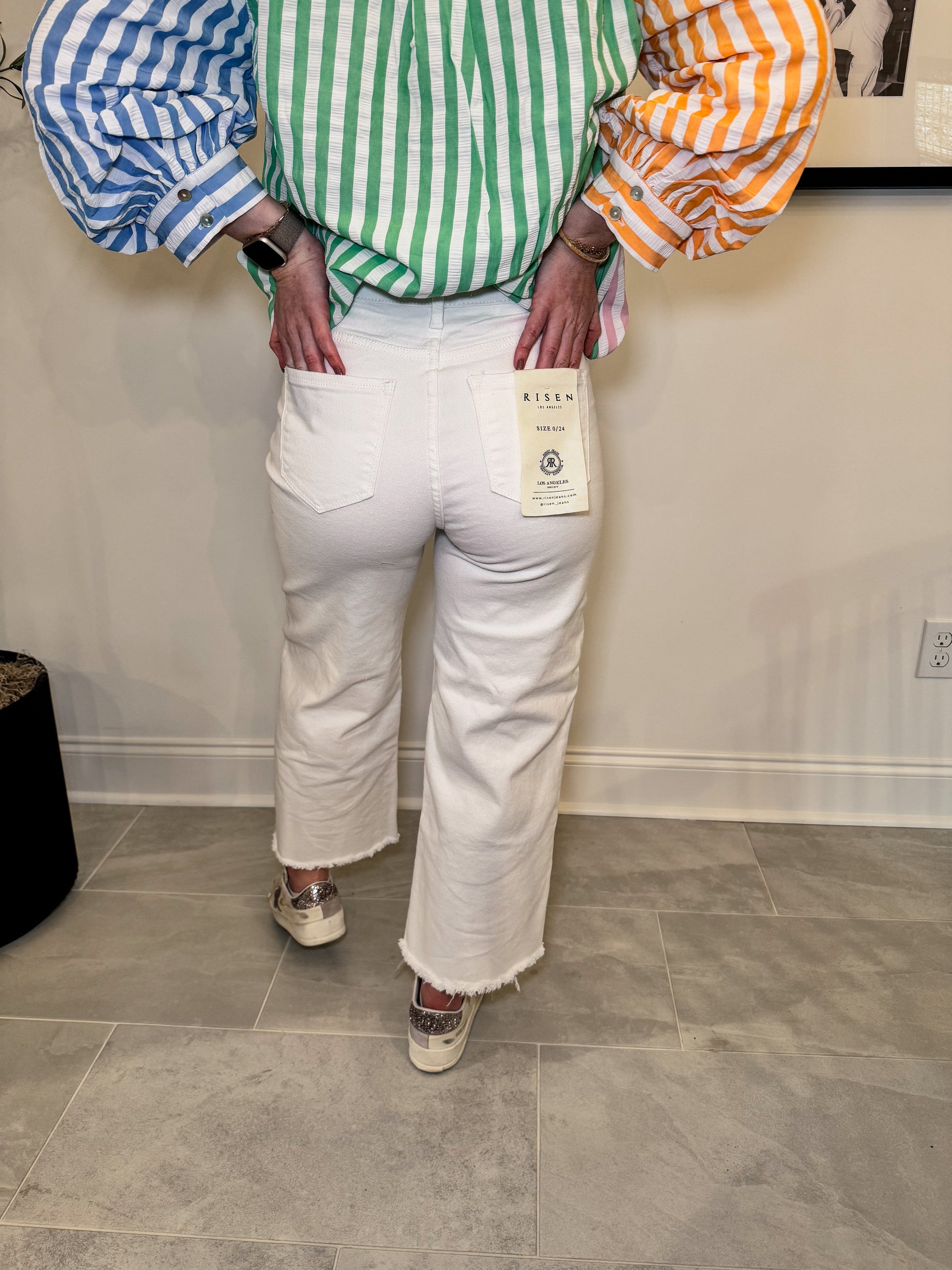 Risen White High Rise Wide Leg Jeans